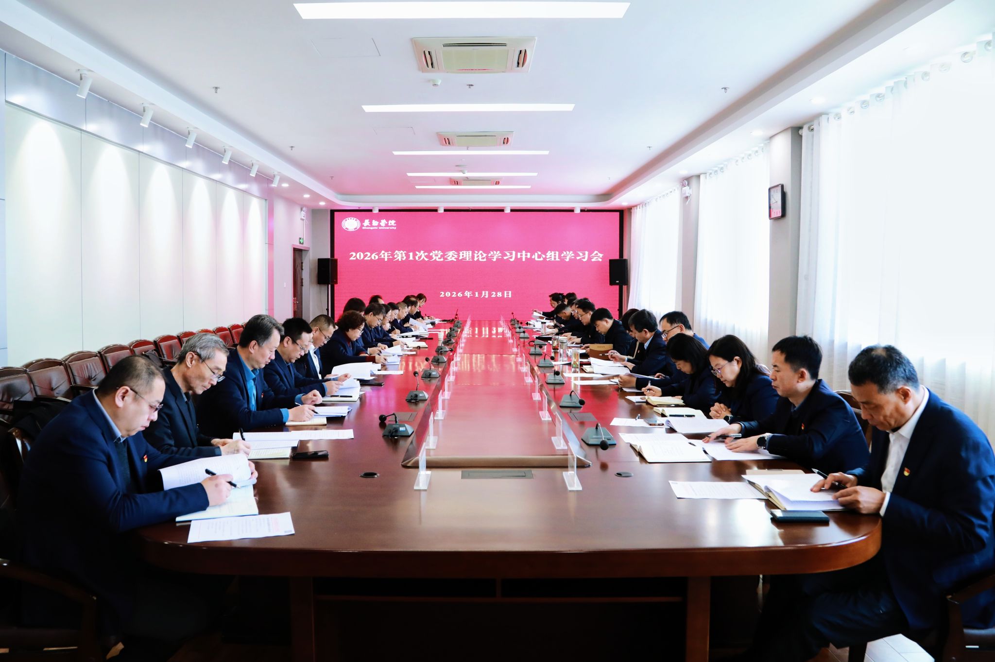 1月28日,校党委召开2026年第一次理论学习中心组(扩大)学习会。会议聚焦持续深入学习贯彻党的二十届四中全会精神等内容,进一步统一思想、深化认识、强化担当,在“十五五”开局之年,为学校2026年工作谋篇布局、定向领航筑牢思想根基。校领导、党务部门负责人和二级党组织书记参加学习。会议集体学习了习近平总书记在省部级主要领导干部学习贯彻党的二十届四中全会精神专题研讨班开班式上的重要讲话精神、在中央经济工作会议上的重要讲话精神、...