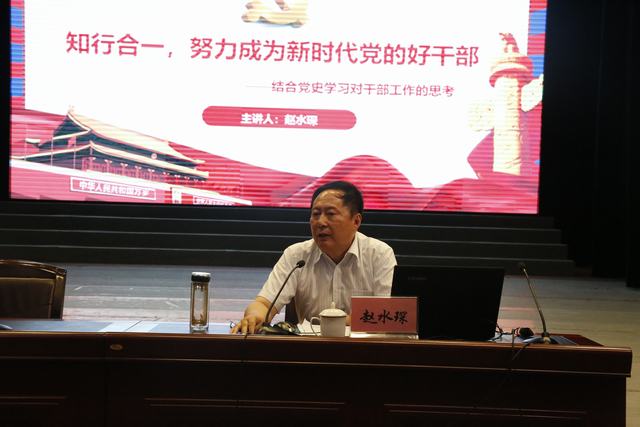党委副书记赵水琛主持培训会并作题为《知行合一,努力成为新时代党的好干部——结合党史学习对干部工作的思考》专题辅导。辅导结合党的历史,梳理了不同时期好干部标准的发展与演变,着重指出,努力成为新时代党的好干部,必须具备一定的基本素质,要做到头脑有根“弦”、眼里有活计、肩上有担当、心中有格局、手上有招数、脚下有根基。