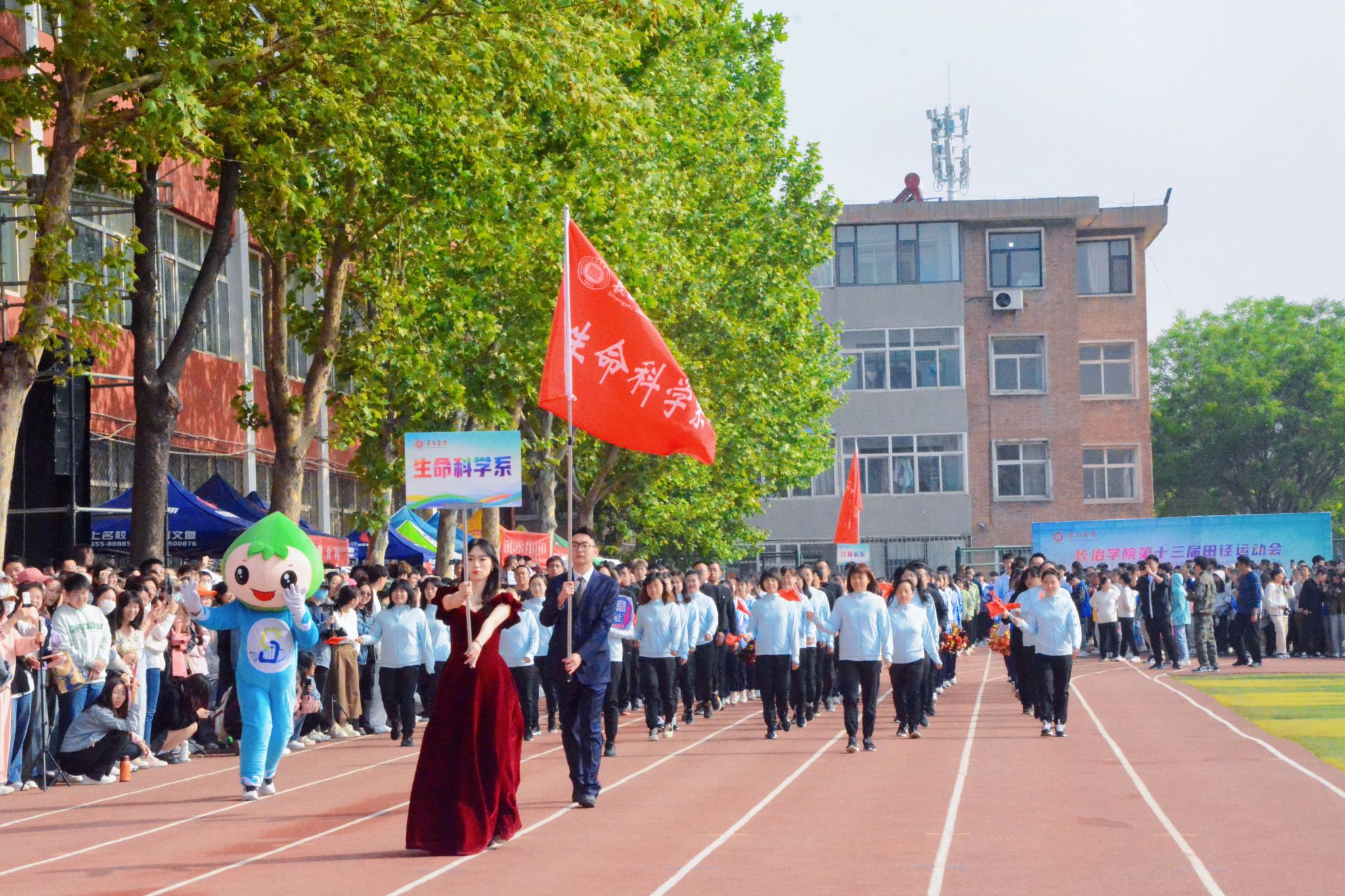 5月11日上午,我校第十三届田径运动会在南校区运动场隆重开幕。党委书记郝勇东,校长曹景川等校党政领导,各院系、各职能部门负责人出席开幕式,全体师生员工参加。奥运会和体操世锦赛世界冠军陈一冰莅临指导。党委书记郝勇东宣布运动会开幕,党委副书记宋志燕主持开幕式。