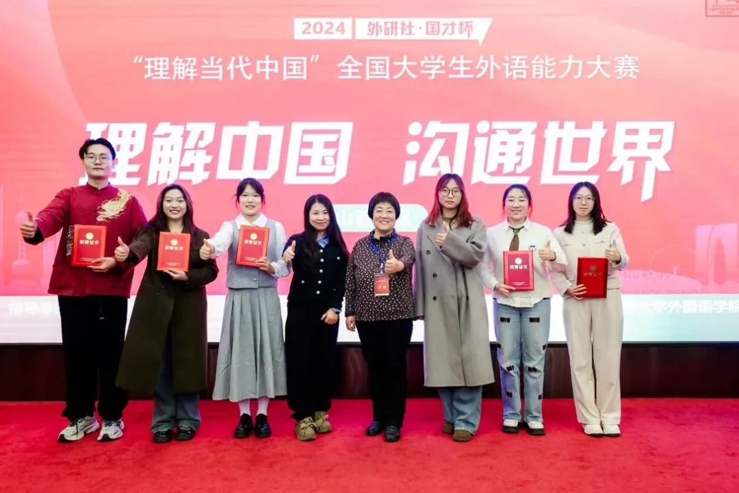 2024年度“外研社·国才杯”“理解当代中国”全国大学生外语能力大赛省赛于11月9日在太原落下帷幕。我校学子获得金奖2项、银奖4项、铜奖7项的好成绩,其中安倬璟、徐从文同学获演讲赛金奖,郭子媛、王珊同学获笔译赛银奖,曹佳颖、安倬璟同学获综合能力赛银奖,梁佳慧、刘阳、王婷娜、赵艺嘉、范力彬、郭子媛、刘湘豫7位同学获五赛铜奖。