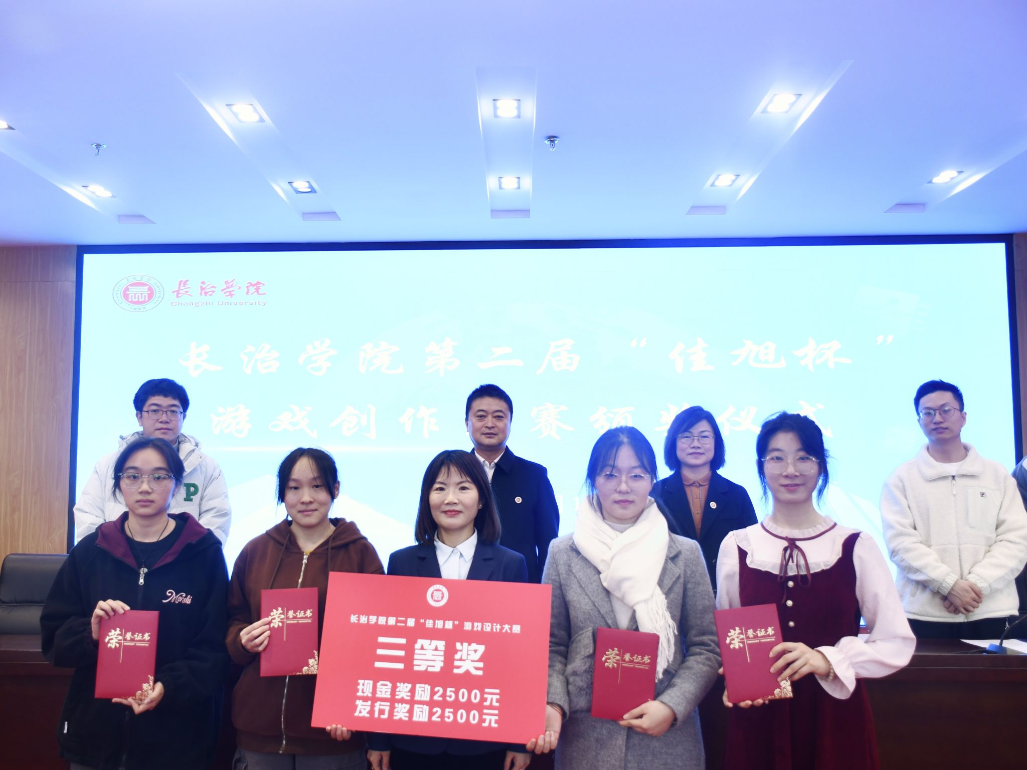 11月16日,长治学院第二届“佳旭杯”游戏创作大赛决赛圆满落幕。我校党委委员、副校长铁军,北京简游科技有限公司技术总监李连琦,山西省朋克科技有限公司总经理韩孟,长治市天勤科技有限公司总经理赵彦皓、办公室主任张贝贝、主美常丽亚出席观摩决赛,我校相关职能部门和院系负责人、师生代表一同观看,共同沉浸式体验了一场游戏创意的展示之旅。