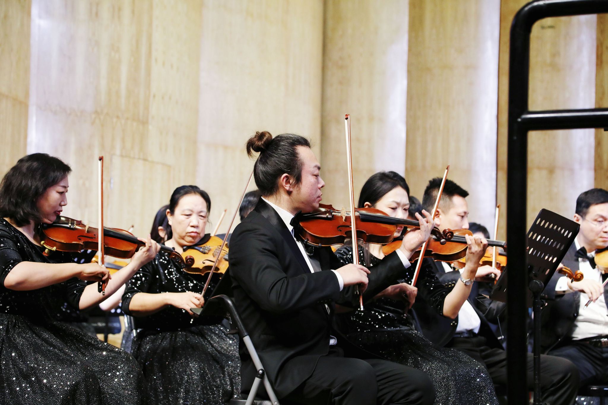 音乐会由音乐舞蹈系教师魏子涛担任指挥、米磊担任乐队首席,在《节日序曲》的欢快旋律中拉开帷幕,为大家营造了浓厚的新年氛围。
