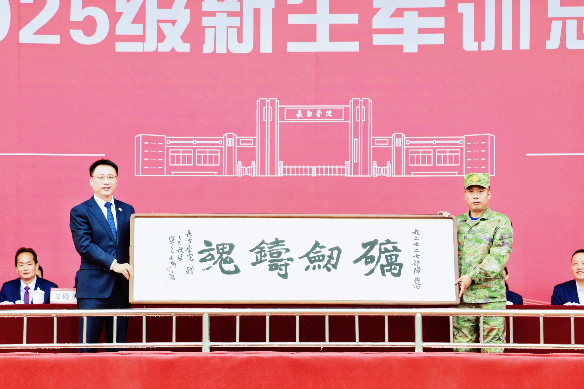 校党委委员、副校长武月明作军训工作总结。他表示,军训是我校落实立德树人根本任务、强化学生国防观念和国家安全意识的重要环节。并对同学们提出三点期望:一是巩固军训成果,争做作风优良的有为青年。同学们将军训中养成的严明纪律、规范行为和良好作息内化为日常习惯,保持军人作风,强化团队精神,增强集体荣誉感,将团结协作和顾全大局的意识带入今后的集体生活。二是坚持全面发展,争做勤学笃行的有为青年。鼓励同学们尽快完成从“新兵”到“新生”的转变,制定科学学习计划,扎实掌握专业知识,积极参与学科竞赛、科技创新、文艺体育和志愿服务等实践活动,培养创新能力和综合素质。三是磨炼强健体魄,争做意志坚强的有为青年。要树立健康第一理念,养成长期锻炼习惯,科学锻炼身体,磨练意志,以饱满的精神状态和积极心态迎接学习生活中的各种挑战,实现身心全面发展。