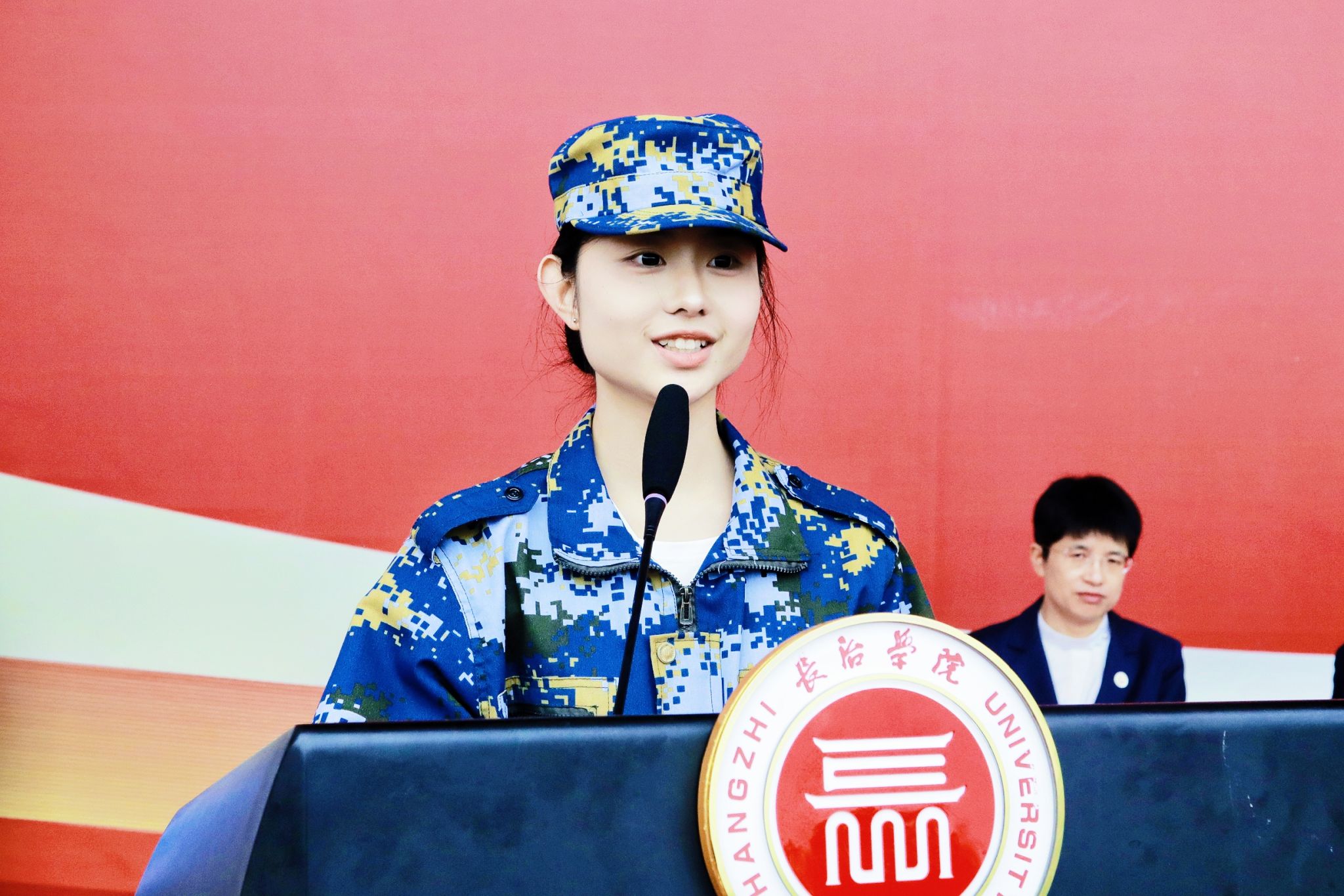 军训标兵代表音乐舞蹈系舞蹈2502班曹翮博怡同学在发言中分享了自己的军训感悟。她表示,今后将以军训为起点,在学业上刻苦钻研,在生活中严于律己,以实际行动践行“强国有我”的青春誓言。