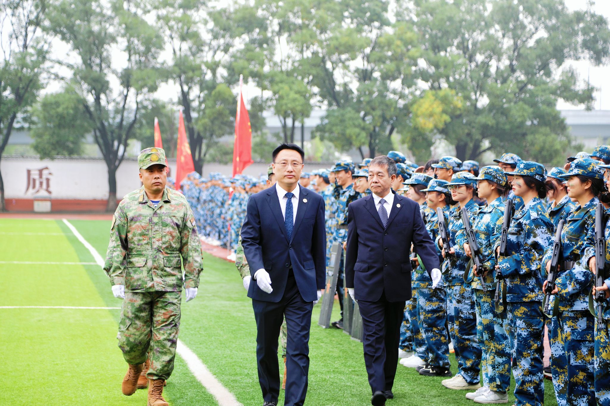 校党委书记曹景川在阅兵总指挥等同志的陪同下检阅了学生受训队伍,向全体受训同学圆满完成军训任务表示祝贺和问候。