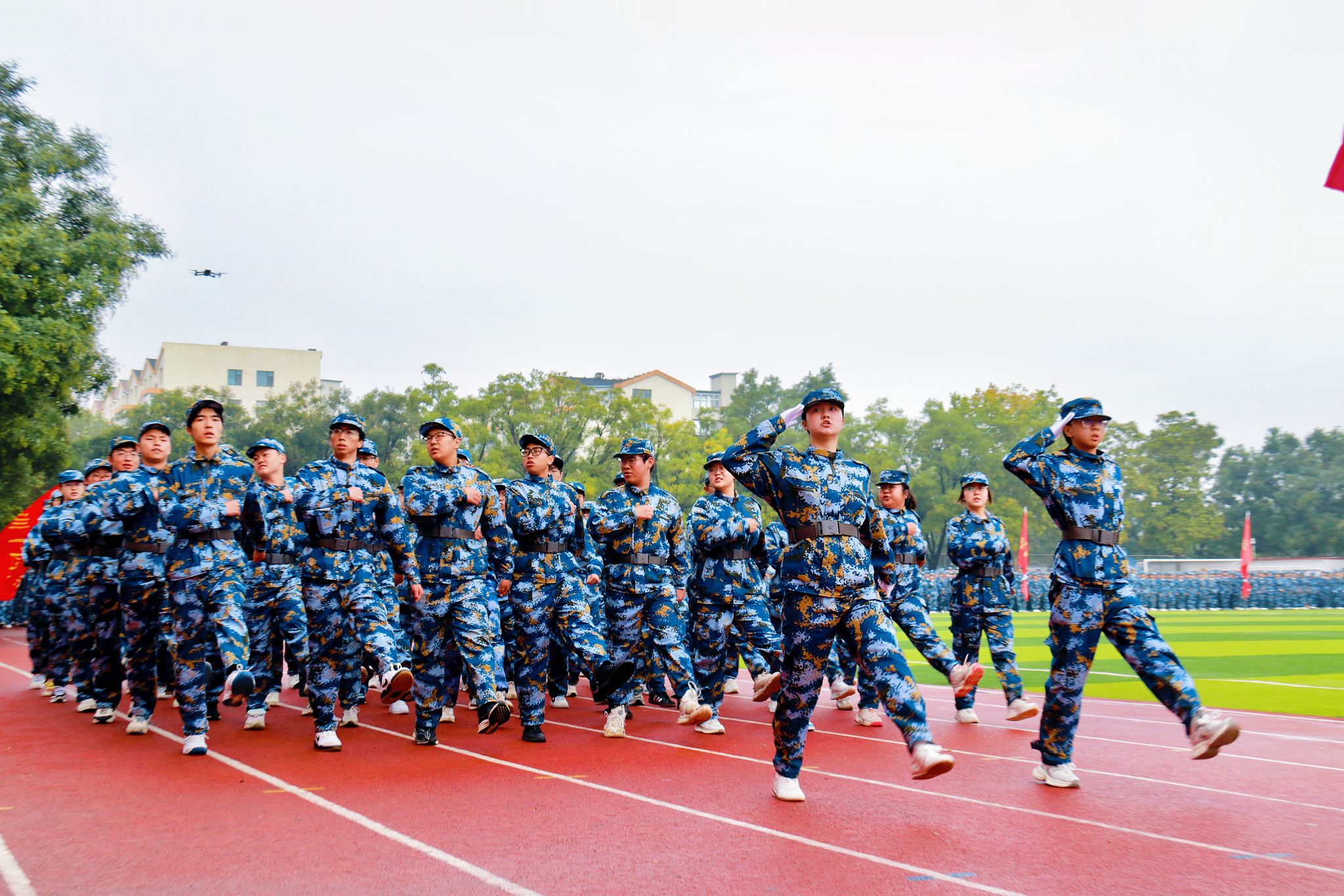 伴随着激昂的《分列式进行曲》,由2025级新生组成的28个受训方队依次通过主席台。新生们身着迷彩服,身姿挺拔、目光坚定,摆臂踏步整齐划一,齐步正步转换流畅、踏地有声,嘹亮的口号响彻校园,尽显训练扎实成果,赢得现场阵阵掌声。