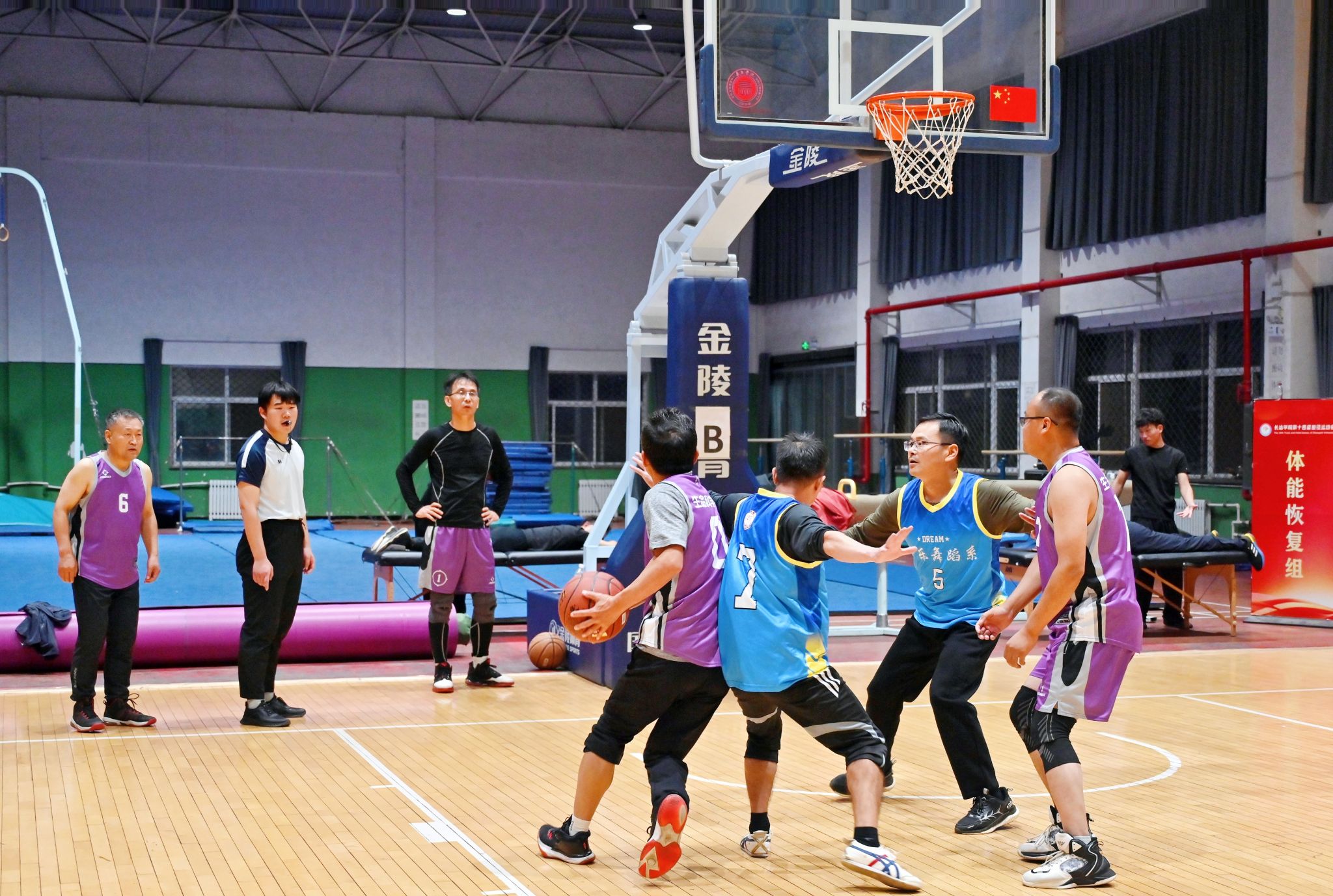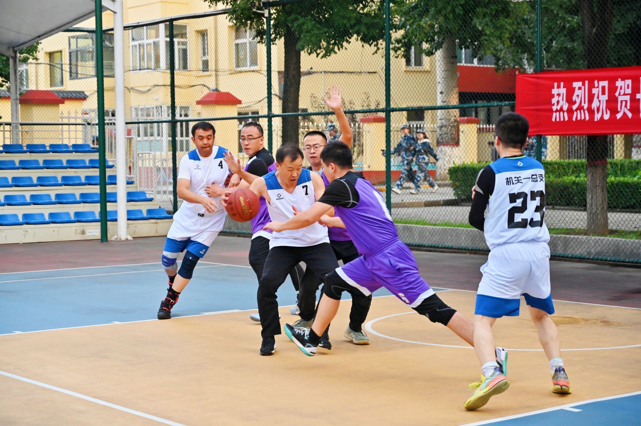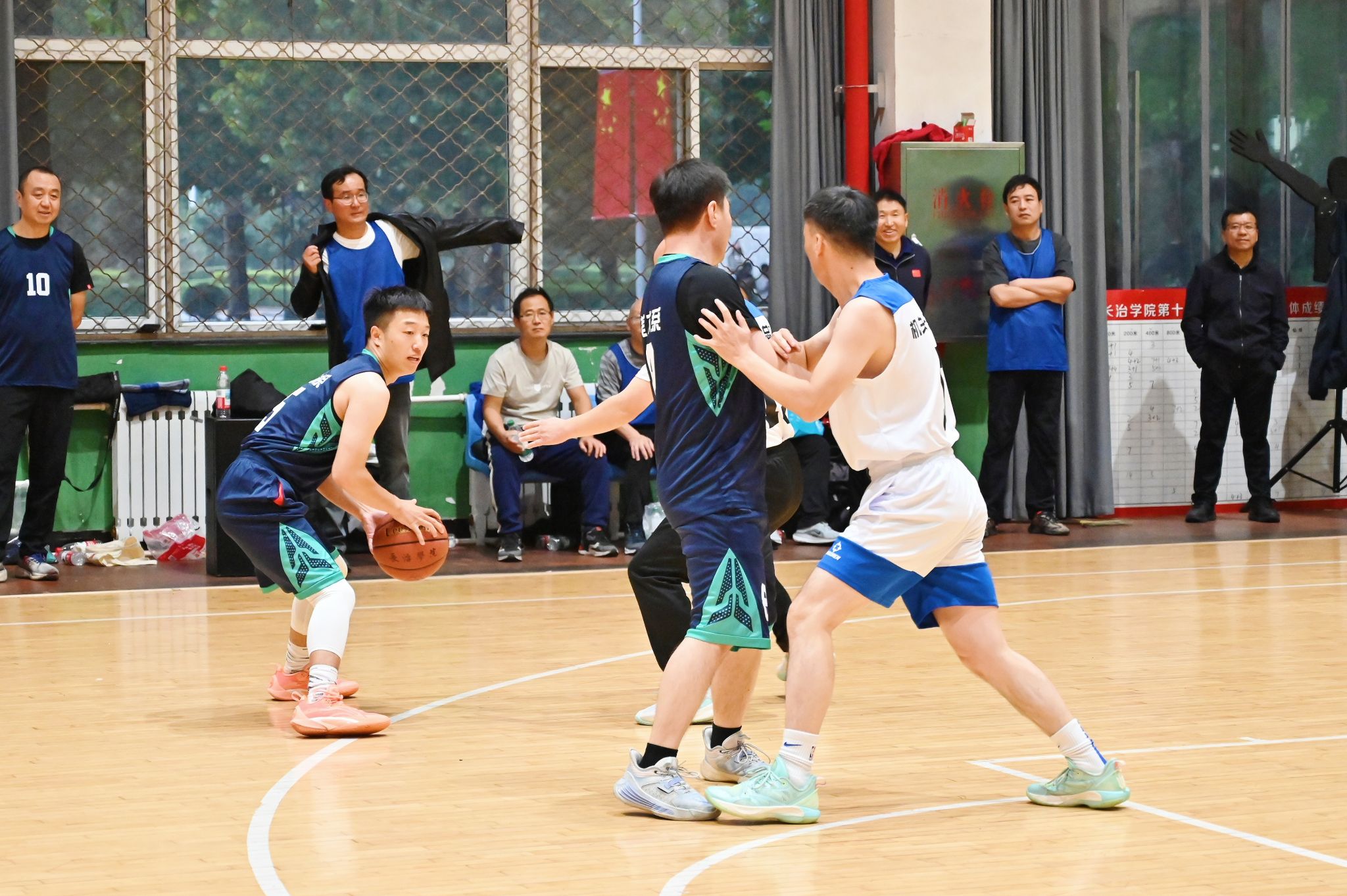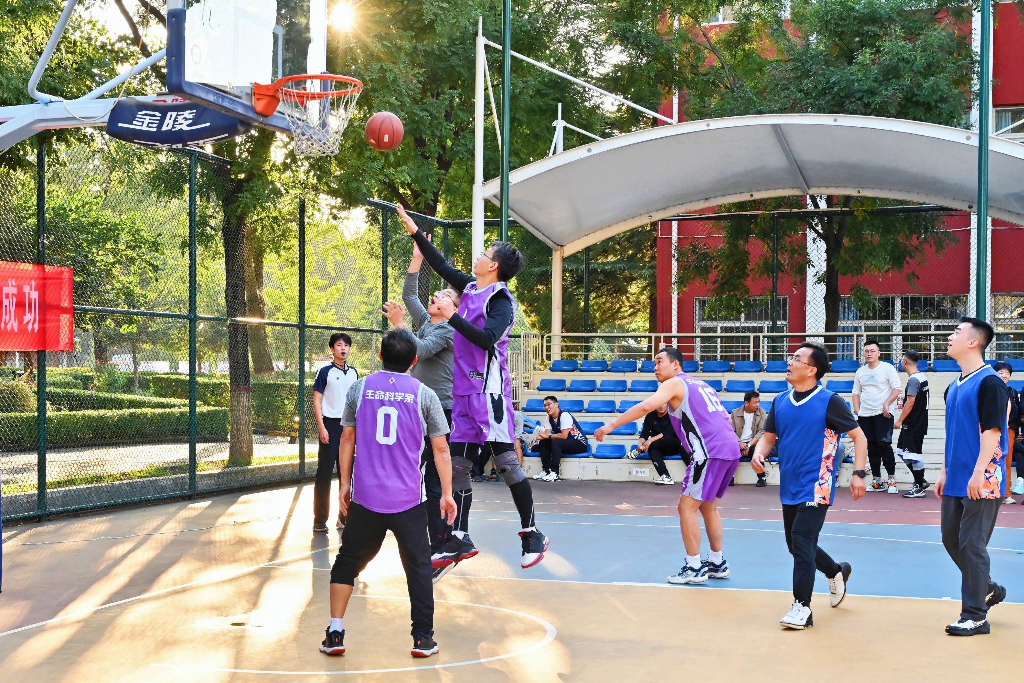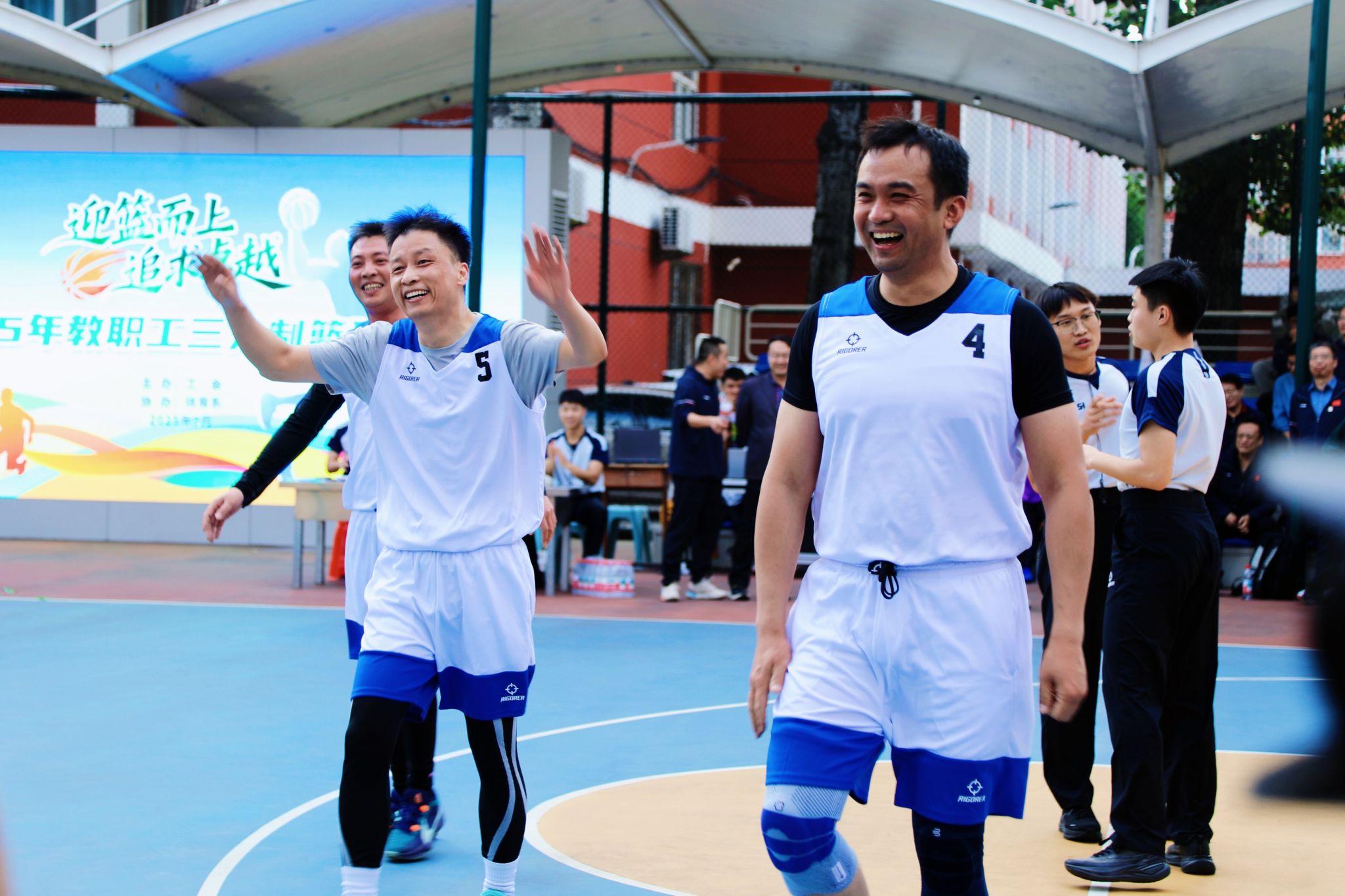 决赛现场高潮迭起,观众欢呼声、呐喊声此起彼伏。教职工们化身为篮球健将,斗志昂扬,全力拼搏。精彩的传球、精准的远投、迅猛的突破、坚固的联防,每一个瞬间都展现出精湛的球技和高效的团队协作。