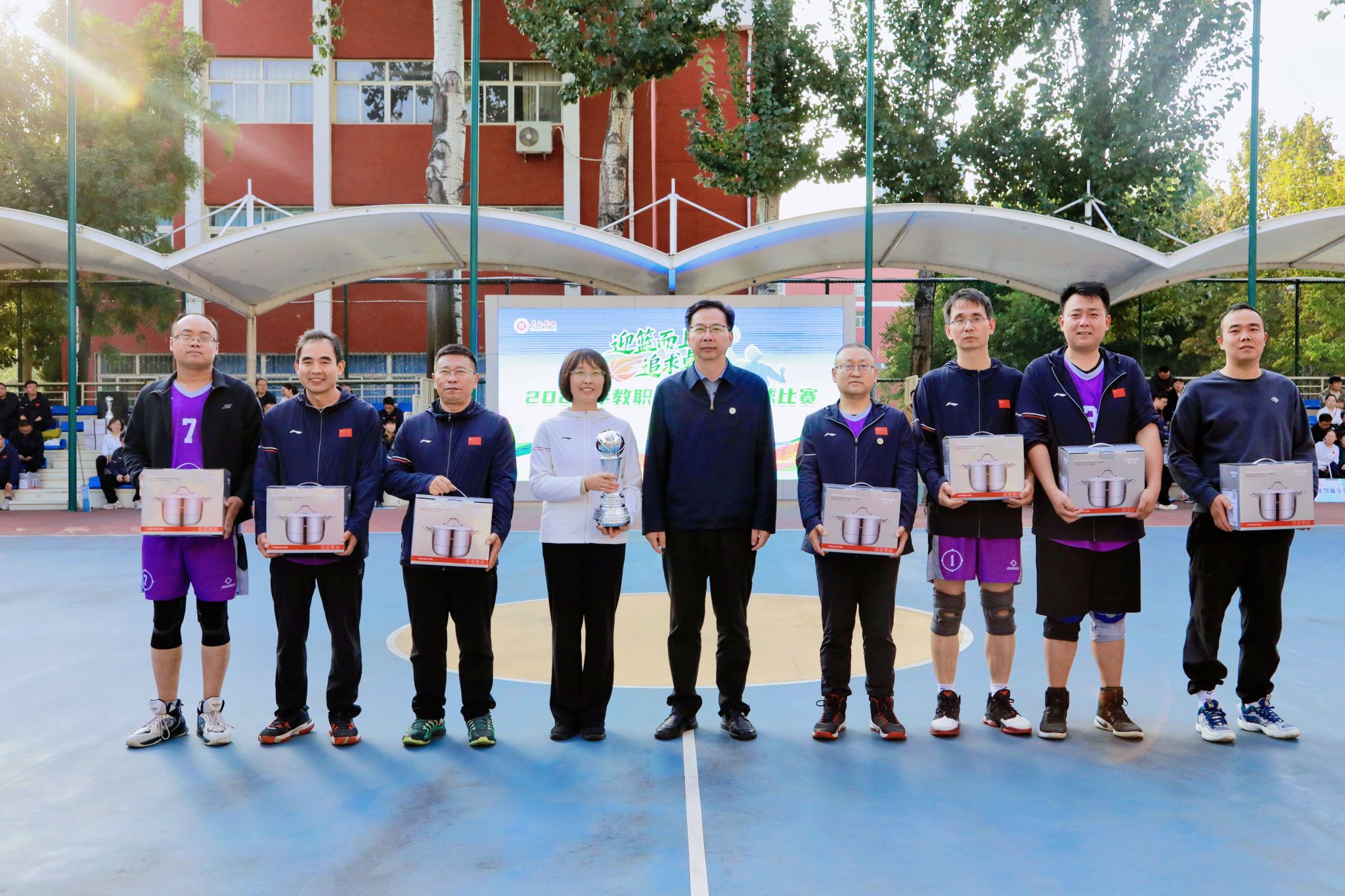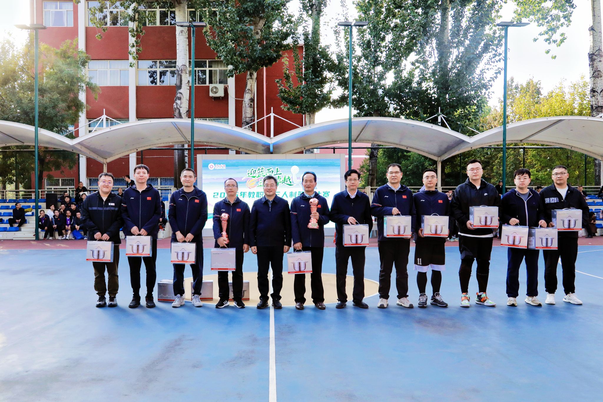 9月29日下午,我校2025年教职工三人制篮球赛在南校区灯光球场圆满落下帷幕。校领导曹景川、史晓东、焦雨、王志军、武月明出席闭幕式。校党委副书记史晓东致闭幕词,校党委委员、副校长武月明主持闭幕式。