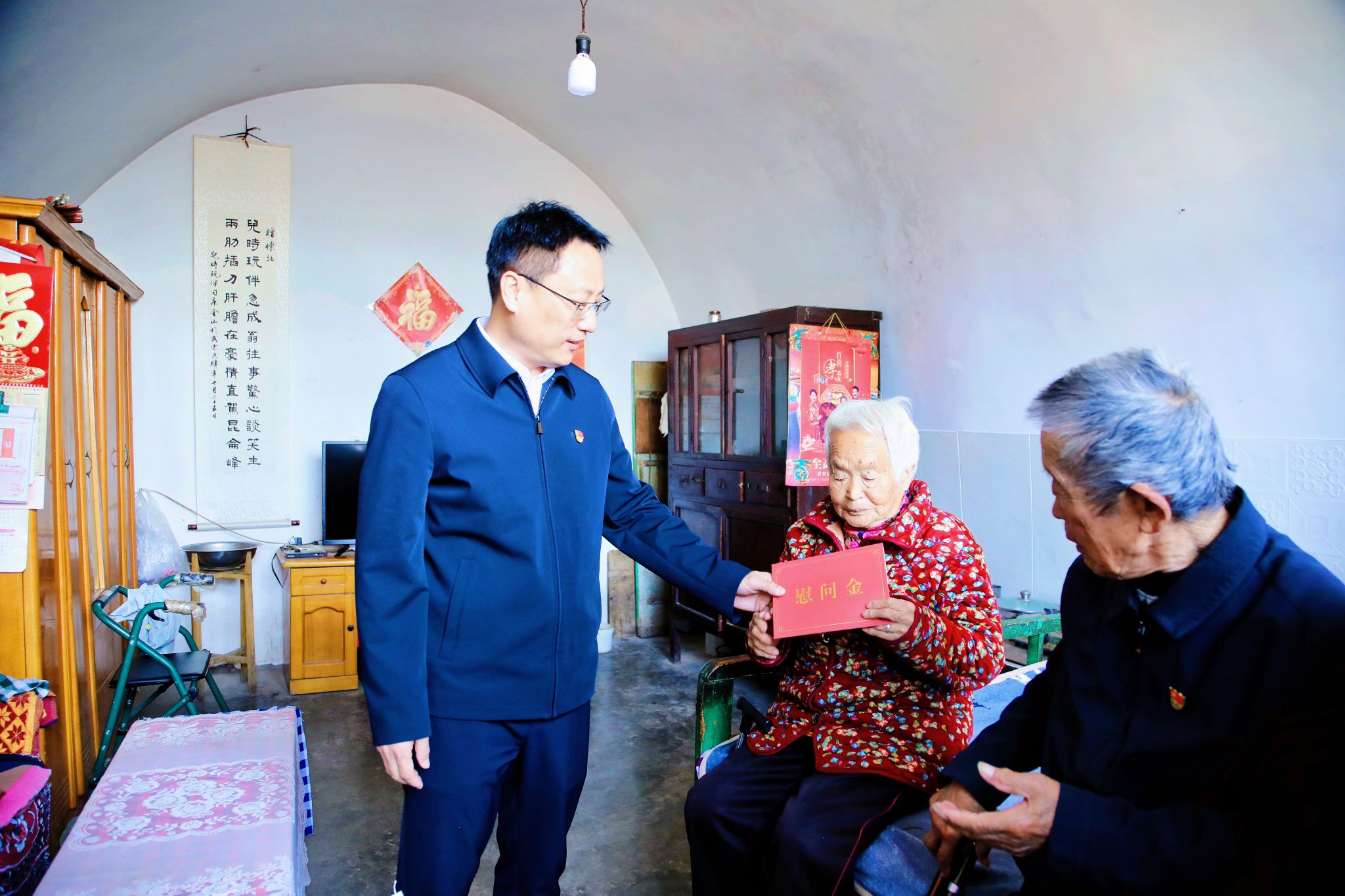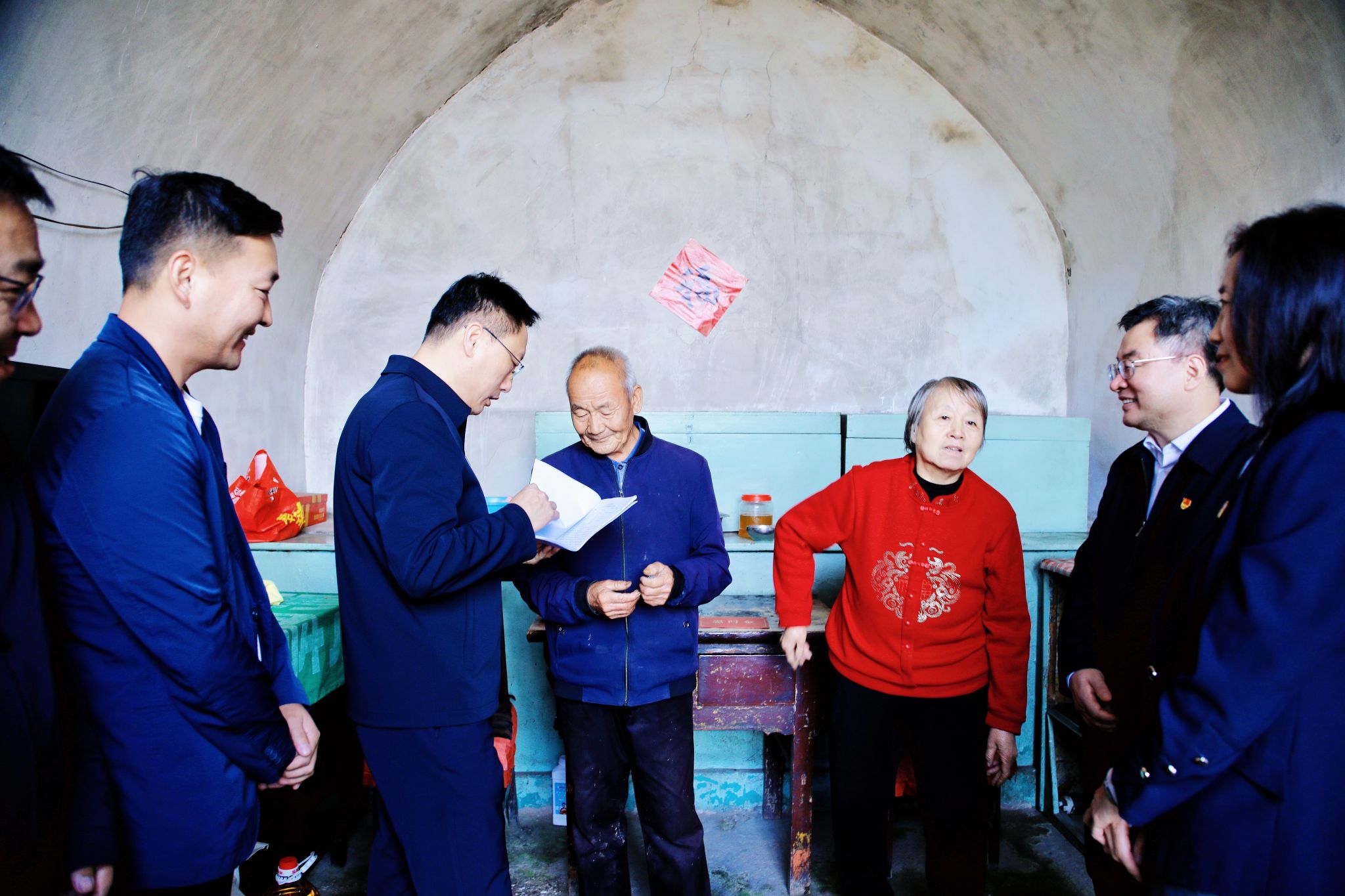 在枣烟村,校领导入户走访了光荣在党50年的老村支书及困难群众,送去节日问候和关怀。校领导详细了解了枣烟村新建红色路牌及地名来历宣传版面,并认真倾听驻村工作队关于帮扶工作的进展汇报。校党委书记曹景川对工作队的辛勤付出给予充分肯定,他指出,要深入挖掘枣烟村的红色文化与乡土资源,将高校的人才优势与文化振兴紧密结合,用心用情讲好红色故事;同时紧盯群众“急难愁盼”,持续抓实“五大振兴”,为乡村全面振兴贡献长治学院智慧和力量。