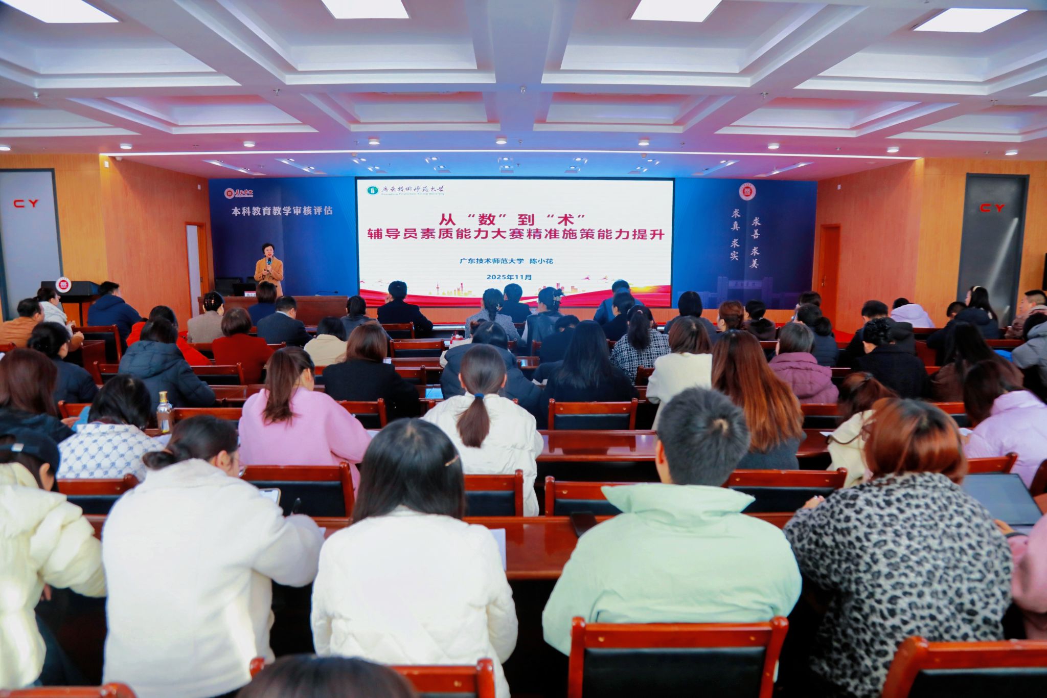 讲座以《从“数”到“术”——辅导员素质能力大赛精准施策能力提升》为主题,陈小花教授结合自身丰富的理论研究和实践经验,围绕辅导员素质能力大赛的核心要素,从政策理解、备赛要点、育人理念、实战技巧等多个维度进行了深入浅出的讲解。她通过生动详实的案例、精准有效的策略,为我校辅导员提供了宝贵的经验借鉴和方向指引。