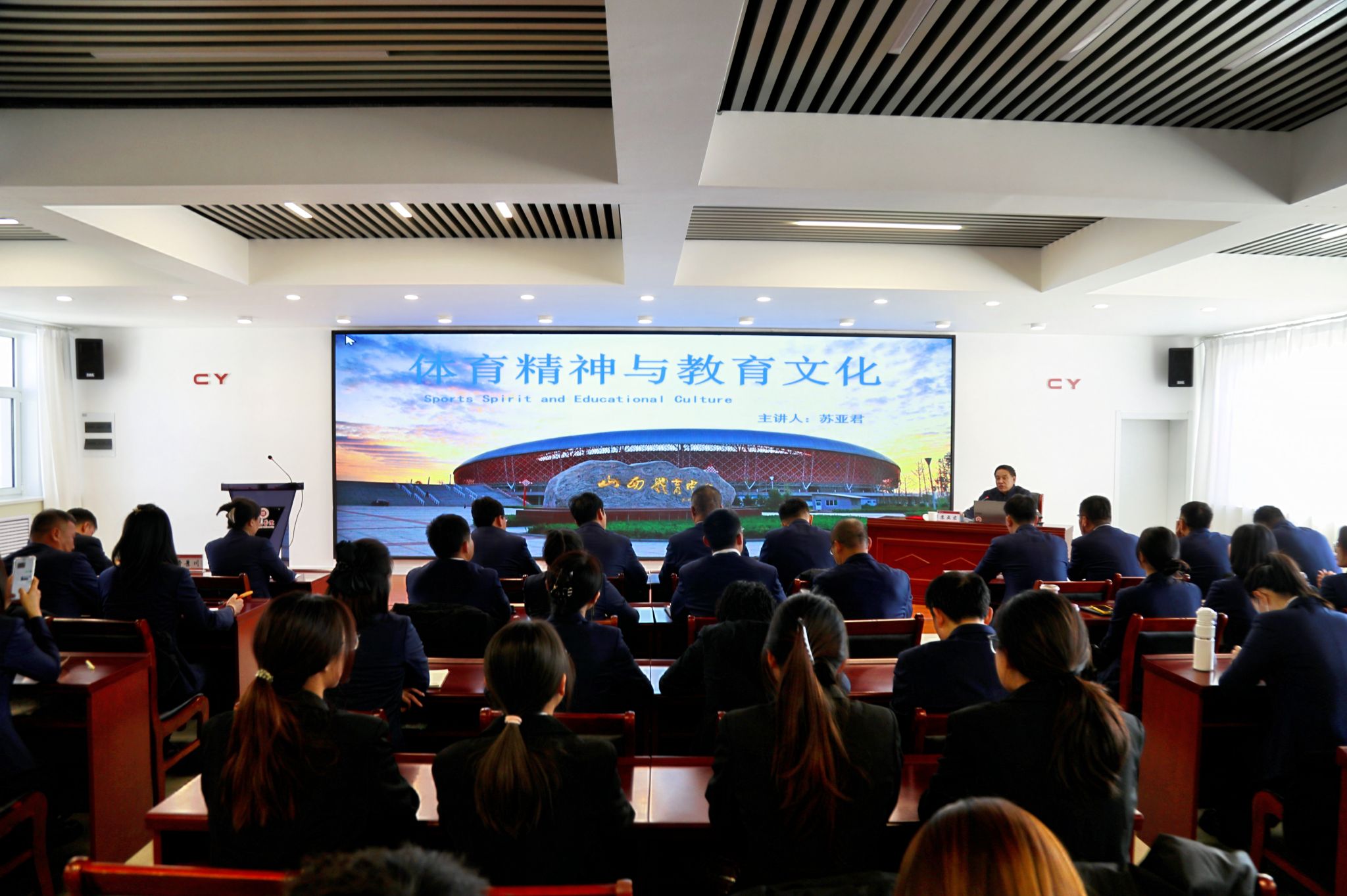 11月27日下午,我校特邀中国老年人体育协会副主席、山西省老年人体育协会主席、山西省政协智库专家、山西省体育局原党组书记、局长苏亚君在南校区1号会议室作题为《体育精神与教育文化》的专题讲座。校党委书记曹景川主持讲座,体育系师生代表共同聆听了报告。