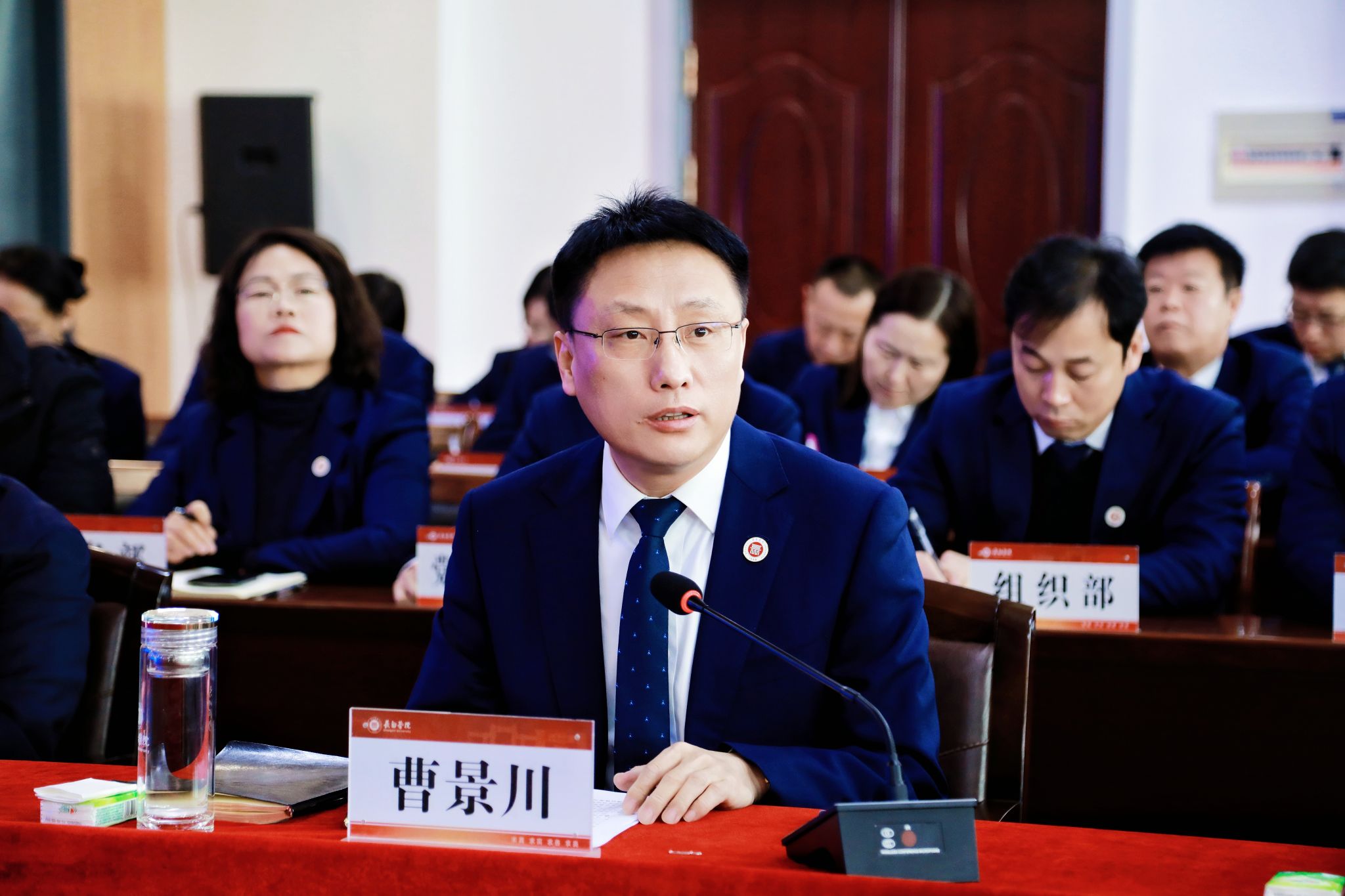 党委书记曹景川代表学校作表态发言。他代表学校全体师生,向专家组和一直以来关心支持学校发展的省教育厅和市委市政府表示诚挚感谢。他表示,学校将以高度的政治觉悟和行动自觉抓好审核评估整改工作。一是聚焦立德树人,构筑高质量育人体系。对照审核评估“五个度”标准,以太行精神培根铸魂,不断完善“三全育人”“五育并举”育人体系。二是聚力整改攻坚,筑牢可持续办学根基。对照专家组反馈意见,系统梳理短板弱项,制定整改方案,真正把审核评估结果转化为夯实办学根基、提升育人质量的扎实行动。三是聚势内涵改革,激发创新发展动力。坚持OBE教育理念,持续深化课堂教学改革,深入构建“产教融合、科教融汇”的育人新生态,切实将审核评估要求转化为深化改革、提升质量的强劲内生动力。