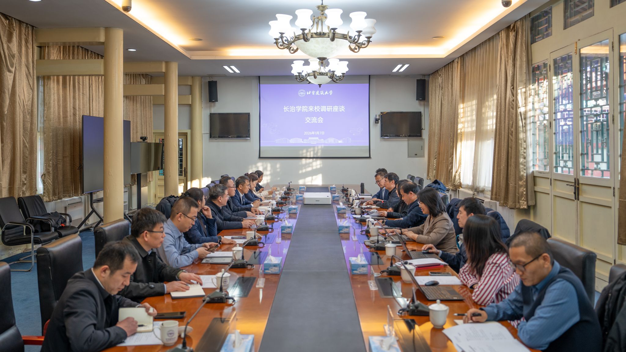 在北京建筑大学,副校长杨建伟带领我校一行参观了机器人实验室、车辆工程与建筑施工装备实验室、工程实践创新中心、大型多功能振动台阵实验室,介绍了北京建筑大学办学成果,服务国家战略需求、深化产教融合方面的先进经验,为我校破解学科发展瓶颈、拓展合作育人路径提供了新思路。相关职能部门进行了座谈交流。