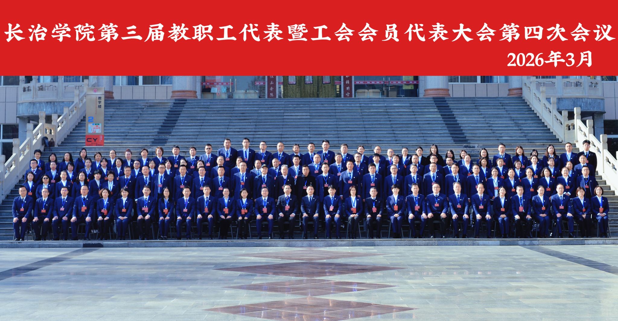 踔厉奋发新征程,勇毅前行谱新篇。3月21日,长治学院第三届教职工代表暨工会会员代表大会第四次会议在实验剧场召开。校领导曹景川、马立峰、史晓东、焦雨、王志军、武月明,大会正式代表、特邀代表、列席代表参加会议。校党委书记曹景川作总结讲话。校党委副书记、校长马立峰作工作报告。会议全面总结2025年和“十四五”发展成就,审议系列报告,统一思想、凝聚共识,为学校开启“十五五”高质量发展新征程擘画蓝图、指明方向。
