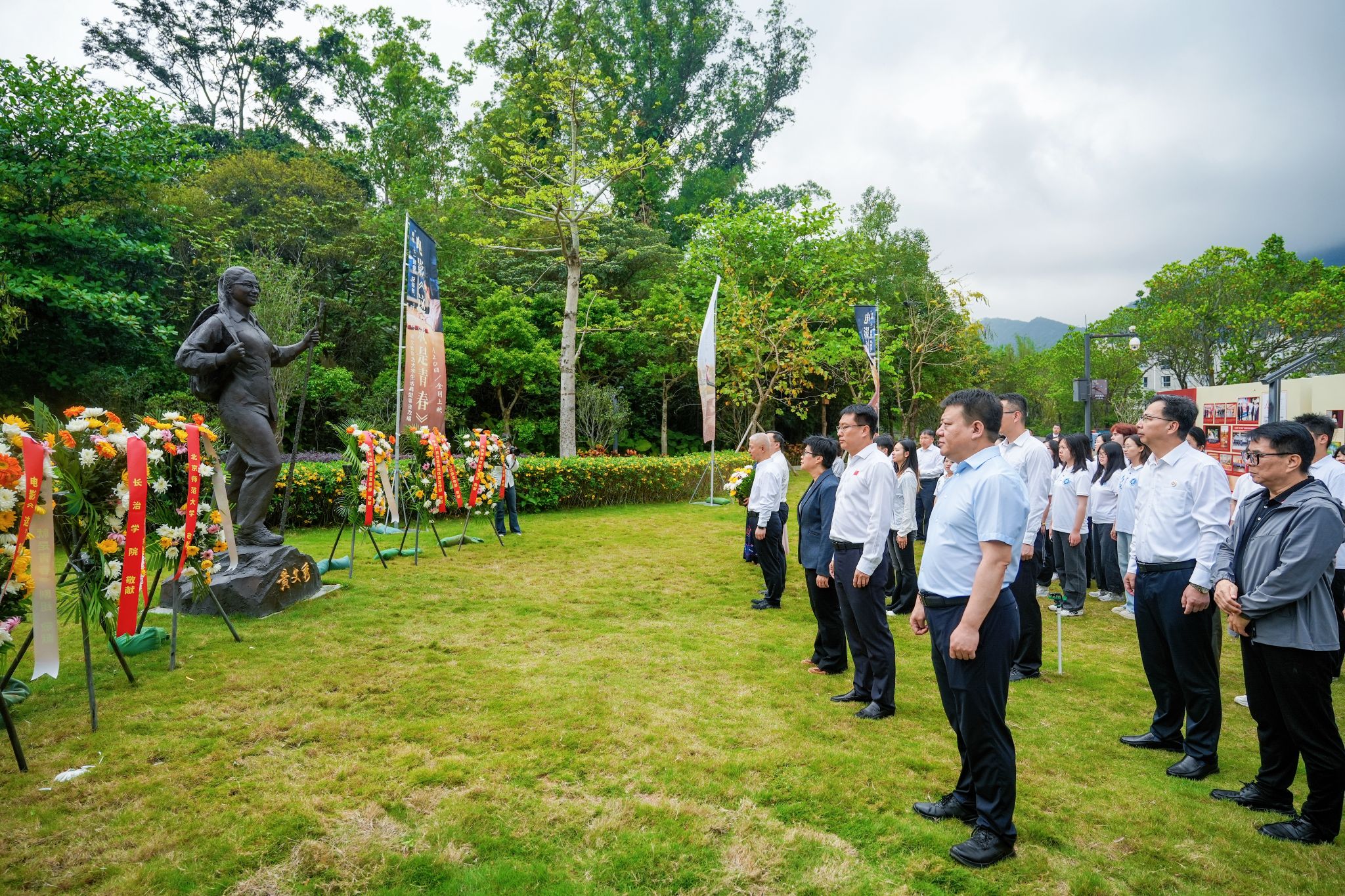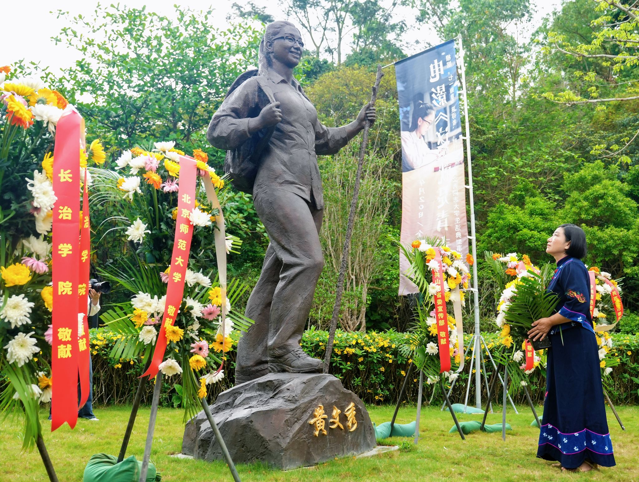 集体观影前,与会领导嘉宾、师生代表共同参观“谱写新时代的青春之歌——黄文秀先进事迹展”,并向黄文秀铜像敬献花篮。