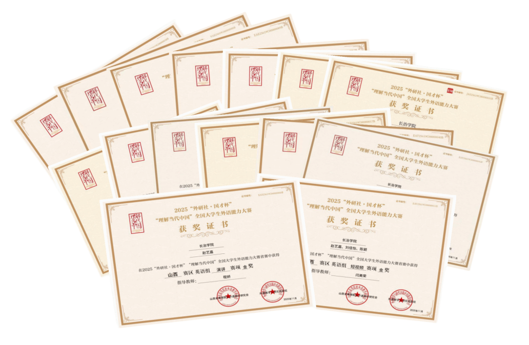 近日,2025年“外研社·国才杯”“理解当代中国”全国大学生外语能力大赛山西赛区比赛在太原圆满落幕。经过激烈的比拼,我校学子在英语组和多语种(日语)赛项斩获省赛金奖2项、银奖5项、铜奖10项,为学校赢得了荣誉。
