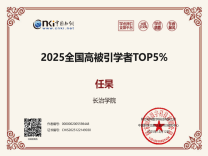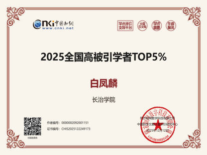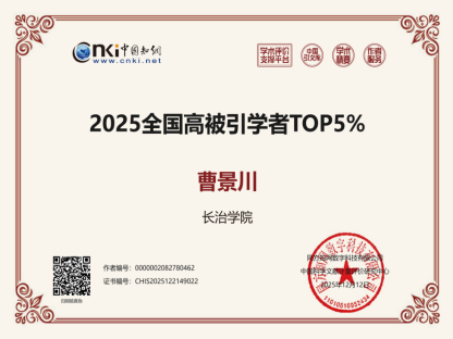 近日,中国知网(CNKI)中国科学文献计量评价研究中心发布了“2025全国高被引学者”榜单。我校曹景川、任杲、白凤麟3名教师成功入选“高被引学者TOP5%”。