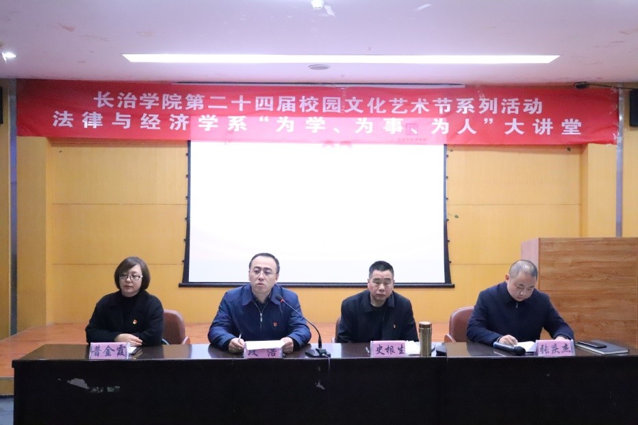 为深入贯彻落实立德树人的根本要求,加强对学生思想政治教育工作,体现“第二课堂”的政治引领和价值感召力,使21级新生深入了解长治学院的发展史。10月14日,法律与经济学系于逸夫楼东004开展长治学院第二十四届校园文化艺术节系列--法律与经济学系“为学,为事,为人”大讲堂活动。原生化系、化学系党总支书记、机关党委书记史根生、系党委书记段浩、党委副书记张庆杰、系副主任普金霞出席,2021级新生参加本次活动,张庆杰老师主持。