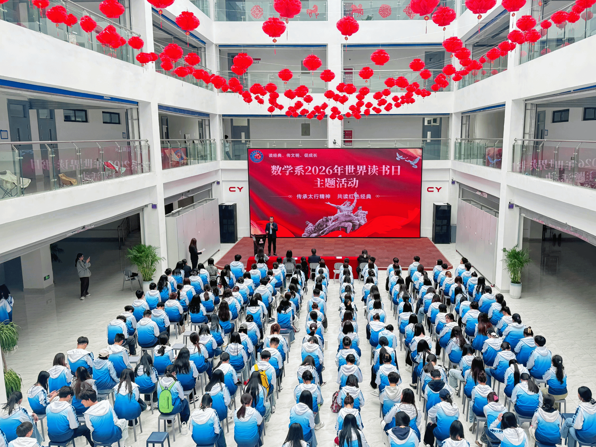 4月17日,在2026年世界读书日来临之际,数学系在南校区3号楼学术报告厅举办“传承太行精神 共读红色经典”世界读书日分享交流会。系领导班子成员、师生代表共同参加。